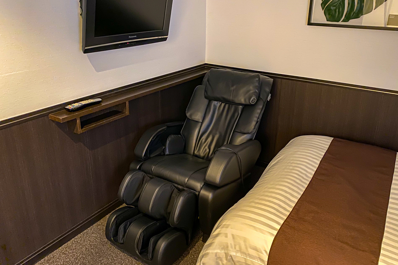 部屋の中にマッサージチェアが完備されているのが素晴らしい。