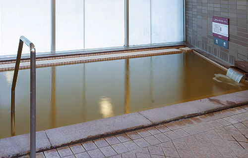 湯はアルカリ性で、茶色くツルツルの全国でも珍しいモール泉。