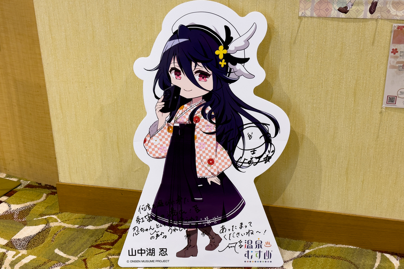 山中湖温泉には温泉むすめも存在しており、ホテル富士マウントでもパネルが置かれていた。