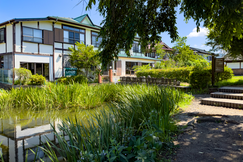紅富士の湯から車ですぐの山中湖のほとりにあるお店で、和風な外観が良い。