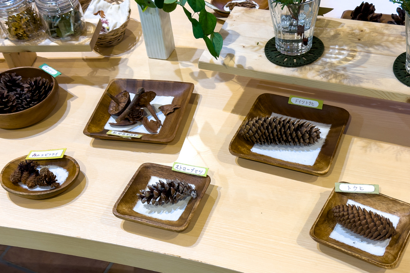 テーブルには木の実などが置かれており、自由に手に取って観察することができる。