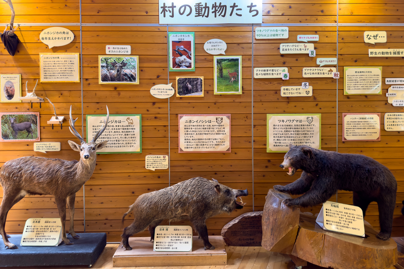 忍野村にいる動物の剥製のコーナー。